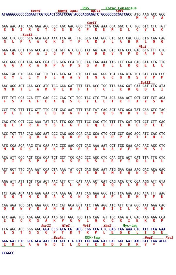 | OTI Disclaimer | The molecular sequence of this clone aligns with the gene accession number as a point of reference only. However, individual transcript sequences of the same gene can differ through naturally occurring variations (e.g. polymorphisms), each with its own valid existence. This clone is substantially in agreement with the reference, but a complete review of all prevailing variants is recommended prior to use. More info |