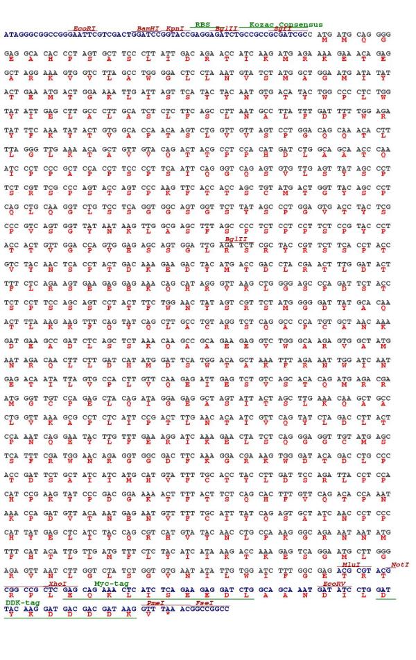 | OTI Disclaimer | The molecular sequence of this clone aligns with the gene accession number as a point of reference only. However, individual transcript sequences of the same gene can differ through naturally occurring variations (e.g. polymorphisms), each with its own valid existence. This clone is substantially in agreement with the reference, but a complete review of all prevailing variants is recommended prior to use. More info |