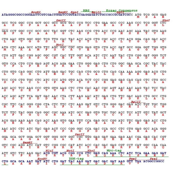| OTI Disclaimer | Due to the inherent nature of this plasmid, standard methods to replicate additional amounts of DNA in E. coli are highly likely to result in mutations and/or rearrangements. Therefore, OriGene does not guarantee the capability to replicate this plasmid DNA. Additional amounts of DNA can be purchased from OriGene with batch-specific, full-sequence verification at a reduced cost. Please contact our customer care team at custsupport@origene.com or by calling 301.340.3188 option 3 for pricing and delivery. The molecular sequence of this clone aligns with the gene accession number as a point of reference only. However, individual transcript sequences of the same gene can differ through naturally occurring variations (e.g. polymorphisms), each with its own valid existence. This clone is substantially in agreement with the reference, but a complete review of all prevailing variants is recommended prior to use. More info |