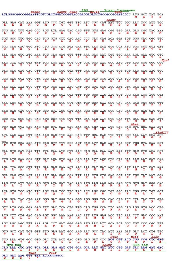 | OTI Disclaimer | The molecular sequence of this clone aligns with the gene accession number as a point of reference only. However, individual transcript sequences of the same gene can differ through naturally occurring variations (e.g. polymorphisms), each with its own valid existence. This clone is substantially in agreement with the reference, but a complete review of all prevailing variants is recommended prior to use. More info |