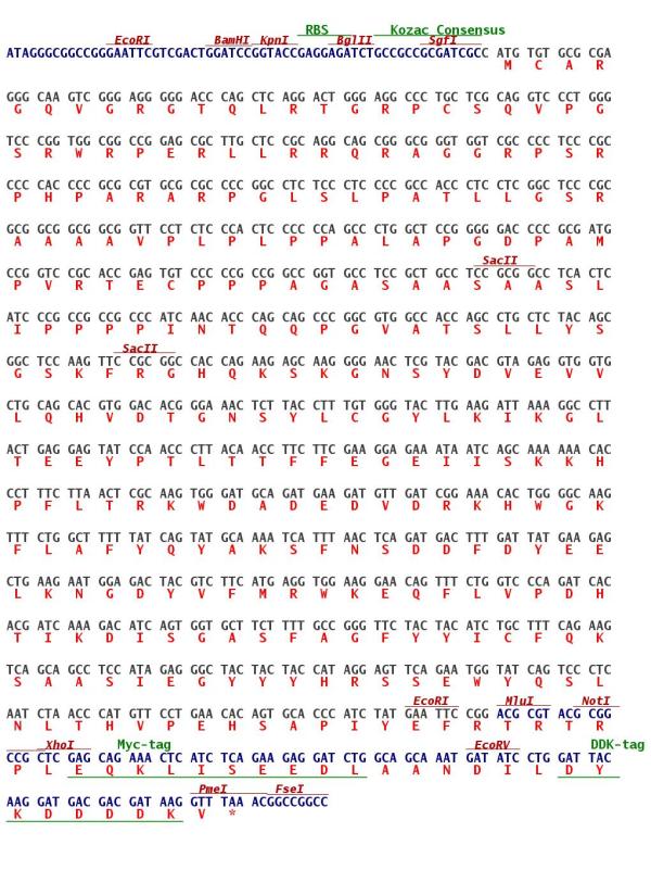 | OTI Disclaimer | The molecular sequence of this clone aligns with the gene accession number as a point of reference only. However, individual transcript sequences of the same gene can differ through naturally occurring variations (e.g. polymorphisms), each with its own valid existence. This clone is substantially in agreement with the reference, but a complete review of all prevailing variants is recommended prior to use. More info |