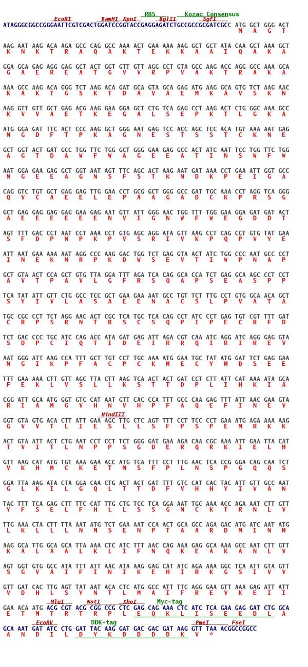 | Reconstitution Method | 1. Centrifuge at 5,000xg for 5min. 2. Carefully open the tube and add 100ul of sterile water to dissolve the DNA. 3. Close the tube and incubate for 10 minutes at room temperature. 4. Briefly vortex the tube and then do a quick spin (less than 5000xg) to concentrate the liquid at the bottom. 5. Store the suspended plasmid at -20°C. The DNA is stable for at least one year from date of shipping when stored at -20°C. |