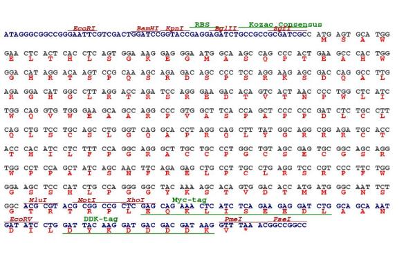 | OTI Disclaimer | The molecular sequence of this clone aligns with the gene accession number as a point of reference only. However, individual transcript sequences of the same gene can differ through naturally occurring variations (e.g. polymorphisms), each with its own valid existence. This clone is substantially in agreement with the reference, but a complete review of all prevailing variants is recommended prior to use. More info |