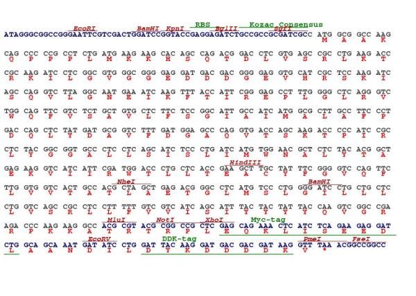 | E. coli Selection | Kanamycin (25 ug/mL) |