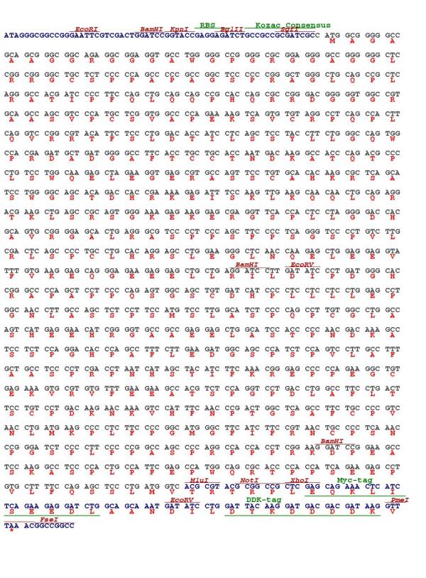| OTI Disclaimer | The molecular sequence of this clone aligns with the gene accession number as a point of reference only. However, individual transcript sequences of the same gene can differ through naturally occurring variations (e.g. polymorphisms), each with its own valid existence. This clone is substantially in agreement with the reference, but a complete review of all prevailing variants is recommended prior to use. More info |