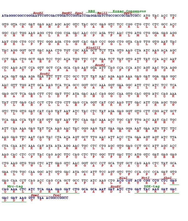 | OTI Disclaimer | Due to the inherent nature of this plasmid, standard methods to replicate additional amounts of DNA in E. coli are highly likely to result in mutations and/or rearrangements. Therefore, OriGene does not guarantee the capability to replicate this plasmid DNA. Additional amounts of DNA can be purchased from OriGene with batch-specific, full-sequence verification at a reduced cost. Please contact our customer care team at custsupport@origene.com or by calling 301.340.3188 option 3 for pricing and delivery. The molecular sequence of this clone aligns with the gene accession number as a point of reference only. However, individual transcript sequences of the same gene can differ through naturally occurring variations (e.g. polymorphisms), each with its own valid existence. This clone is substantially in agreement with the reference, but a complete review of all prevailing variants is recommended prior to use. More info |