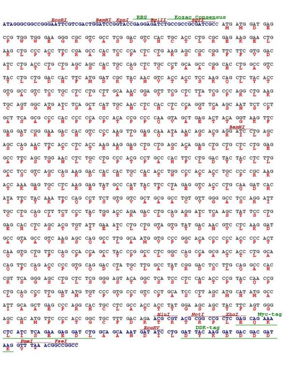 | OTI Disclaimer | The molecular sequence of this clone aligns with the gene accession number as a point of reference only. However, individual transcript sequences of the same gene can differ through naturally occurring variations (e.g. polymorphisms), each with its own valid existence. This clone is substantially in agreement with the reference, but a complete review of all prevailing variants is recommended prior to use. More info |