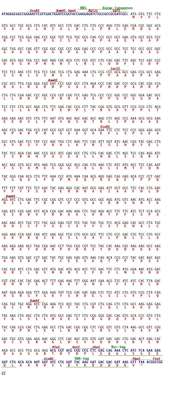 | OTI Disclaimer | Due to the inherent nature of this plasmid, standard methods to replicate additional amounts of DNA in E. coli are highly likely to result in mutations and/or rearrangements. Therefore, OriGene does not guarantee the capability to replicate this plasmid DNA. Additional amounts of DNA can be purchased from OriGene with batch-specific, full-sequence verification at a reduced cost. Please contact our customer care team at custsupport@origene.com or by calling 301.340.3188 option 3 for pricing and delivery. The molecular sequence of this clone aligns with the gene accession number as a point of reference only. However, individual transcript sequences of the same gene can differ through naturally occurring variations (e.g. polymorphisms), each with its own valid existence. This clone is substantially in agreement with the reference, but a complete review of all prevailing variants is recommended prior to use. More info |