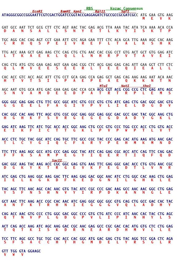 | Reconstitution Method | 1. Centrifuge at 5,000xg for 5min. 2. Carefully open the tube and add 100ul of sterile water to dissolve the DNA. 3. Close the tube and incubate for 10 minutes at room temperature. 4. Briefly vortex the tube and then do a quick spin (less than 5000xg) to concentrate the liquid at the bottom. 5. Store the suspended plasmid at -20°C. The DNA is stable for at least one year from date of shipping when stored at -20°C. |